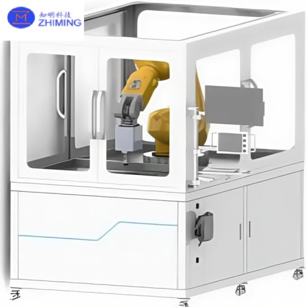 The intelligent robotic polishing machine is built on a six-axis industrial robot platform (KUKA or ABB), equipped with an electronic pressure cylinder, adjustable rotary axis, and multiple polishing heads (flexible airbag, rigid tool, wheel type). Integrated with proprietary polishing software and the robot control system, it enables high-precision optical polishing for large-diameter components.